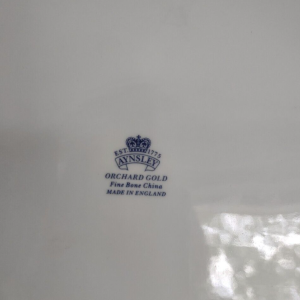 This piece is an original, handmade vase with a glossy finish. It is decorated with an art pottery style and produced using traditional pottery techniques. The tray is printed with a backstamp and is an excellent addition to any collection. Add a touch of sophistication to your home with this beautiful Aynsley Orchard Gold Square Tray.