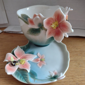 Beautiful and very delicate fine porcelain cup & saucer by Franz.