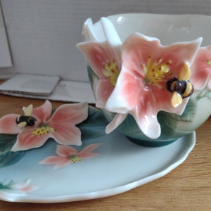 Franz Porcelain Bee Cup, Saucer & Spoon Signed FZ00163 – Retired.