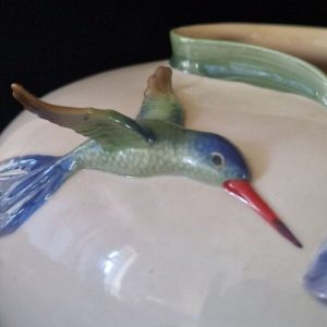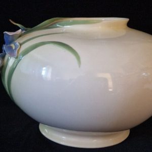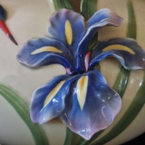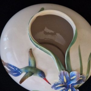 This exquisite vase from the Franz Collection features a stunning hummingbird and iris design on a multicoloured floral pattern. Crafted from high-quality porcelain, this extra-large round bowl measures 20cm in height and 28cm in width. The vase has a 3D effect and is handmade with an art pottery production style.