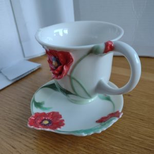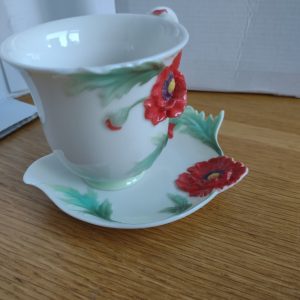 Franz Porcelain Poppy Cup & Saucer Signed FZ00523