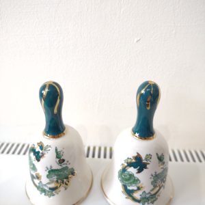 Add a touch of elegance to your home decor with this stunning pair of Masons Green Chartreuse bells. Crafted from high-quality ceramic material, these bells feature a beautiful floral pattern that is sure to capture the attention of your guests. The bells are printed with the Masons brand name and come with a glossy finish that adds to their decorative appeal.