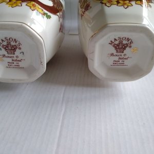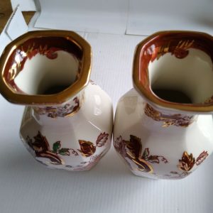 Masons Ironstone Brown Velvet Pair 6″ Indian Vases Hand Painted
