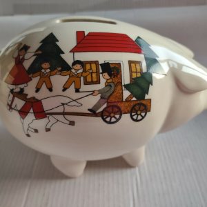 Ironstone Christmas Village approx 7″ Piggy Bank