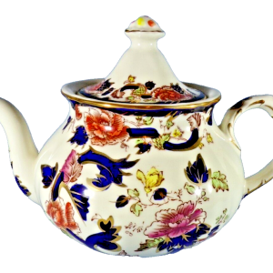Crafted in Staffordshire in 1960, this round teapot features a backstamp with the Mason’s name and is made of high-quality ironstone. It is a handmade original, and care instructions recommend hand washing only. Whether for display or daily use, this teapot is a beautiful addition to any home.