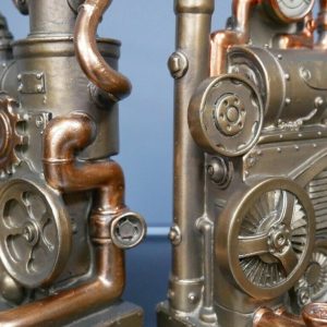 The detail on these Bookends is amazing. The item is designed as book ends yet it has the usual steampunk concept by incorporating other elements. High quality home decor made from resin.